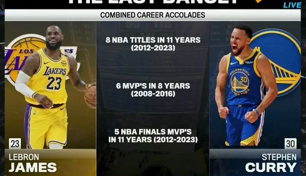 4月11日,在此前湖人对阵勇士的比赛中,媒体打出一列数据,詹姆斯和库里在11年里拿下8个总冠军,8年里6个MVP,11年里获得5个总冠军FMVP。